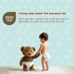 Tất cả vật liệu đều được kiểm định nghiêm ngặt, không chứa các chất độc hại có thể gây dị ứng hoặc kích ứng da bé. Đây là chứng nhận quốc tế uy tín, đảm bảo tã hoàn toàn an toàn ngay cả với trẻ sơ sinh. Bé dùng mỗi ngày, mẹ vẫn hoàn toàn yên tâm.