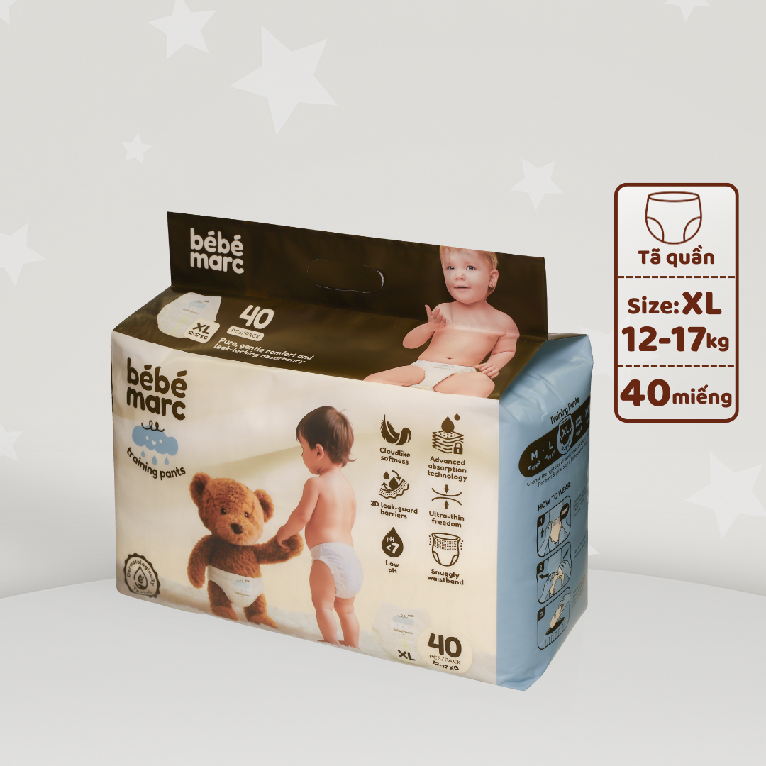 Tã Quần Siêu Mềm Mỏng Nhẹ Cho Bé bébémarc – Size XL, 40 Miếng (12-17Kg)